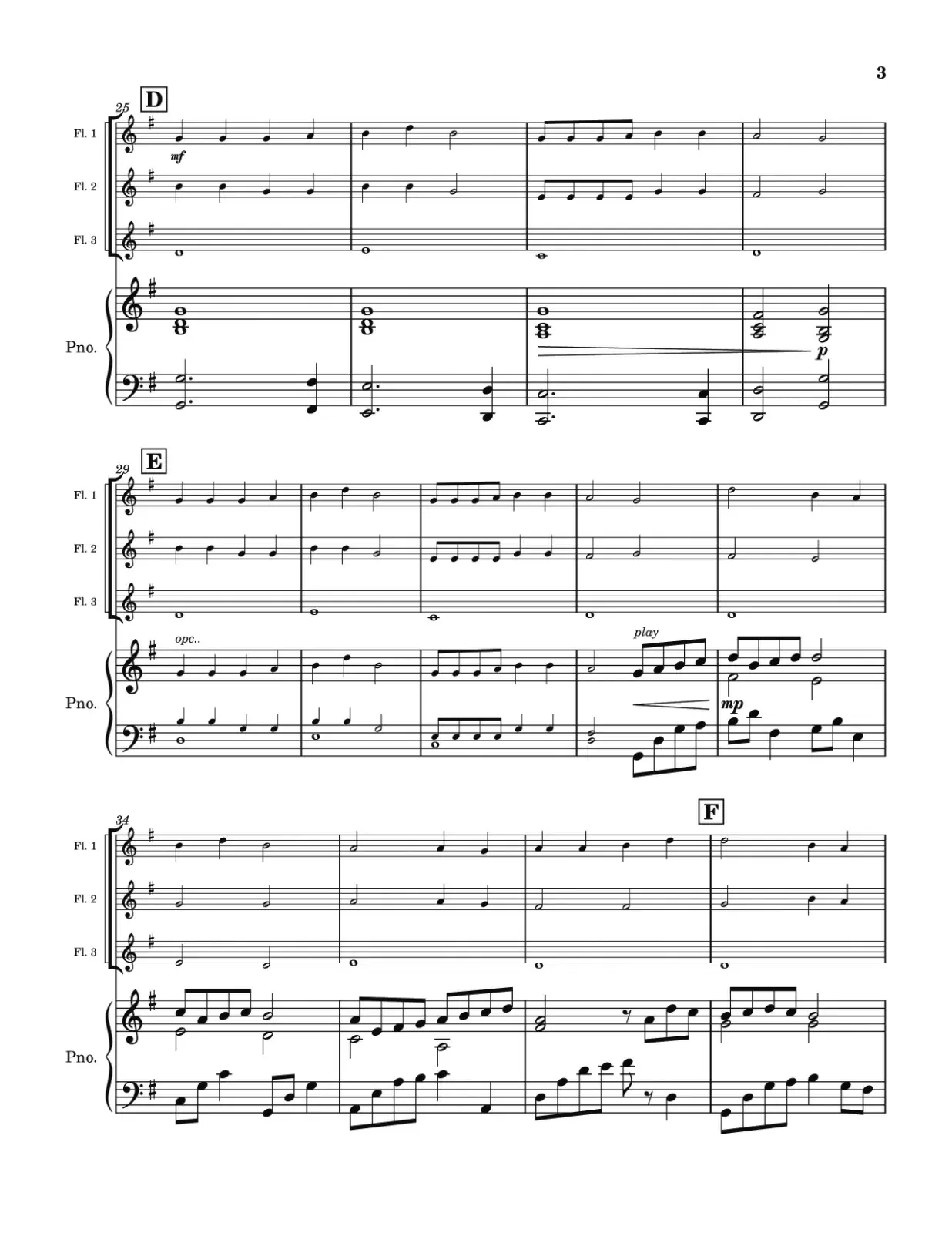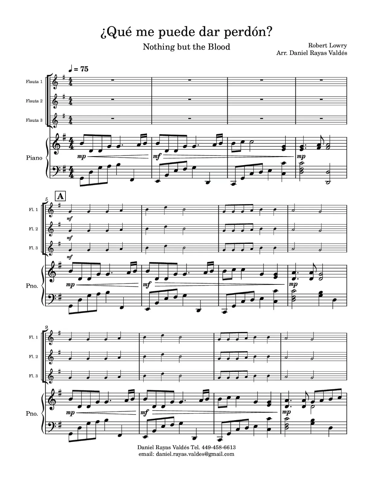 Es un arreglo sencillo para trio de flautas dulces y piano, muy recomendable para diversas situaciones: desde un especial en su iglesia, hasta la competencia en la Convención Estudiantil Mexicana o su versión para niños, la Convención Infantil Mexicana (CIM).